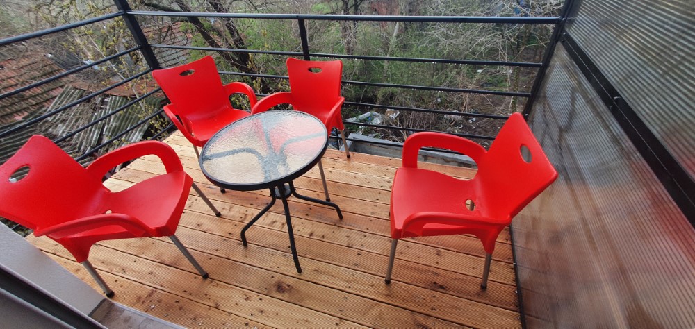 Kuhinja: Kuhinjski pribor, Frižider • Kupatilo: Peškiri, Tuš kabina • Spavaća soba: Posteljina, Garderobni orman, Ravan TV, Internet • Pogledi: Pogled na dvorište, Pogled na grad, Pogled na planinu, Pogled na ulicu • Ostalo: Francuska Terasa, Parking